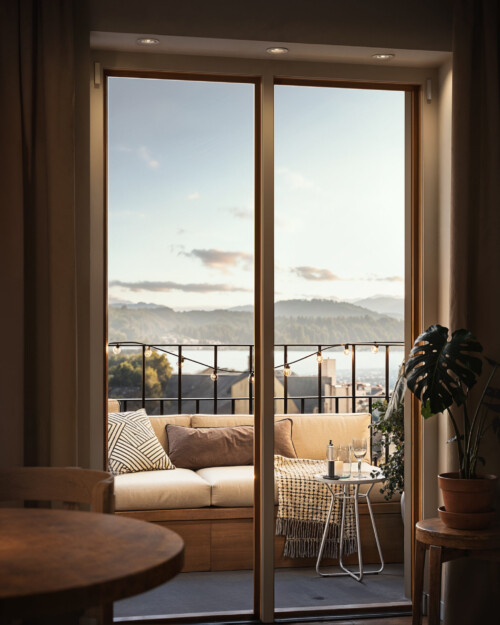 Bostäderna omsluter en stor parkliknande gård med öppna gräsytor och fina platser att vistas på. I det stora gemensamma orangeriet är det medelhavsklimat året runt, en perfekt tempererad tillflyktsort för både stora och små. Söderut öppnar gården upp sig mot solen och den pittoreska sjön Gerdsken, med flera badplatser på sommaren och möjlighet till skridskoåkning på vintern.