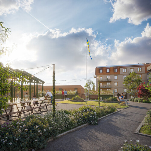 Den centrerade gården är designad för att kunna njutas av året runt. Lägenheter i bottenplan har egna uteplatser med direktutgång till den parkliknande utemiljön, med stora öppna gräsytor perfekt för lek och vila. Gårdens stora variation av sittgrupper i olika storlekar, gör det möjligt för de boende att hitta sin egen lilla vrå i det gemensamma utomhusrummet. Det vackra orangeriet håller medhavsklimat året runt, och rymmer både ett långbord perfekt för fest och odlingsmöjligheter för den med gröna fingrar.